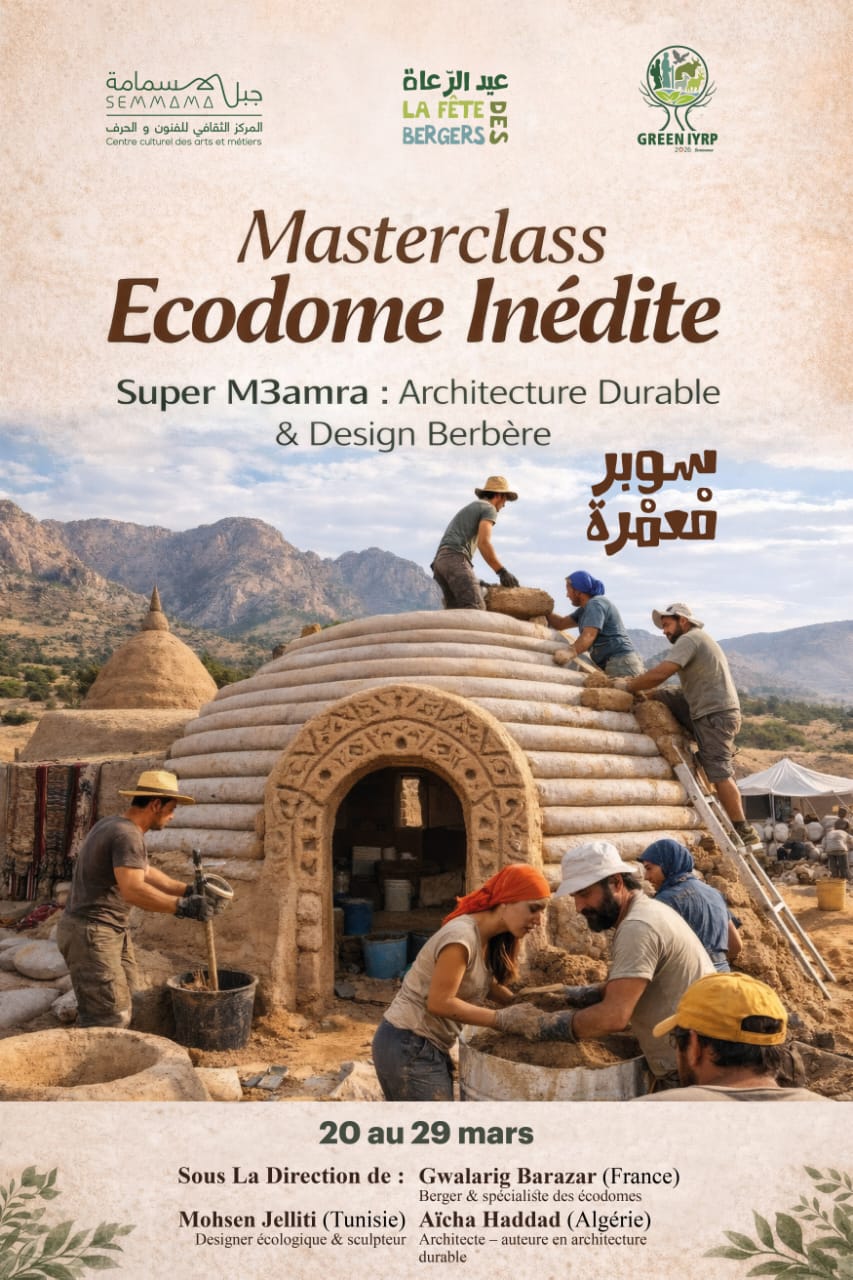 The 14th edition of the Berger Fête 2026, which will take place on 25 au 29 March 2026 in Djebel Semmama, has an exceptional experience during the day in the cadre of the International Rangelands and Pastoralists (IYRP) proclamation by the United Nations. Under this year's international focus on pastoral cultures, the Semmama Bergers refont the home's symbol, and inventing the Montagne's habitation in traveling to an exclusive Superadobe masterclass: the Super M3amra projector, the premier integrated version of this type in Tunisia. Inspired by the pastoral tradition of Semmama, El M3amra, this experimental economy has a heritage and innovation center. The atelier proposes a complete immersion of the style, practicality and ecological design.